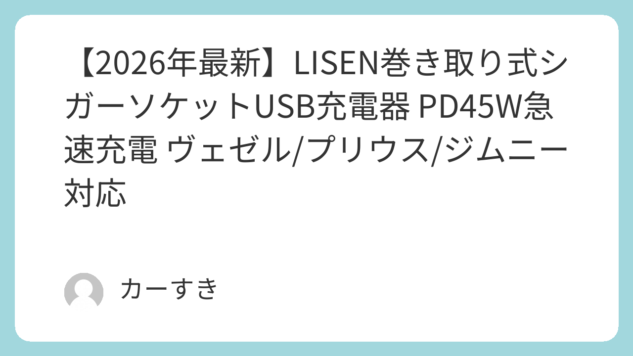 こんにちは、カーすきです。今回は、車内での充電をもっと便利に、もっと快適にするアイテム「LISEN 車 充電器巻き取り しがーソケット usb【2026年新・PD45W急速充電・最小4in1設計】」を徹底レビューします!