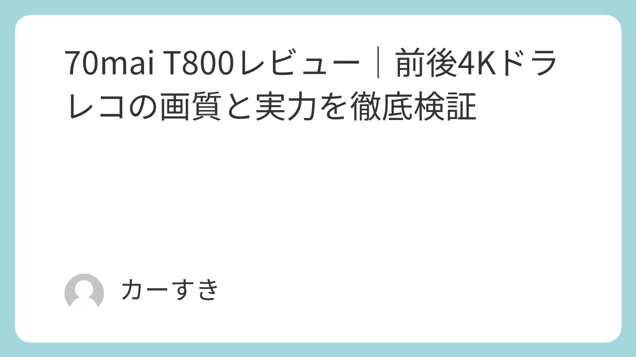どうも、カーすきです!車好きが高じて、カー用品をあれこれ試しながらブログ「カーすき」を運営している普通のサラリーマンです。今回は、話題の70mai Dash Cam 4K T800 premiumsetを実際に購入して、愛車に取り付けてみました。