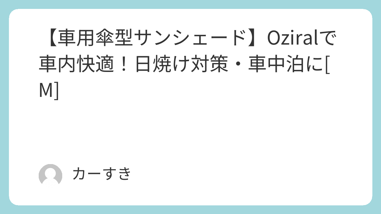 こんにちは、カーすきです。今回は、車内の温度上昇と日焼け対策に役立つ「車用サンシェード フロント 傘型 Oziral【360°回転ハンドル・内装保護】遮光遮熱 UVカット バックミラー開き口 車内日焼け対策 軽量 取付簡単 収納ポーチ+メッシュサイドシェード付き 車用パラソル カー用品 車中泊 仮眠 アウトドア 駐車 M」、通称【Oziral 車用サンシェード 傘型】をご紹介します。